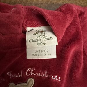 Classic Pooh Size 0-3 Months Red Velour Jumpsuit Baby's First Christmas