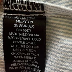 in classic preppy blue and white stripes, this crisp button up features two widths of stripes for a chic, versatile look.  Size Large with approximate measurements laying flat of 21" chest and 28" length.  In like new used condition from a smoke-free, dog friendly home.