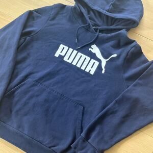 Navy blue Puma hoodie with white logo