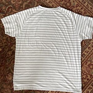 Elevate your casual wardrobe with this classic white tee featuring sleek black stripes. Perfect for everyday wear. Supper soft and comfy.