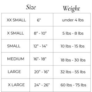 Sizing: For coats measure the exact length of the dog's backbone from the base of the neck to the base of the tail. Choose the size that is closest to the tail without going over.