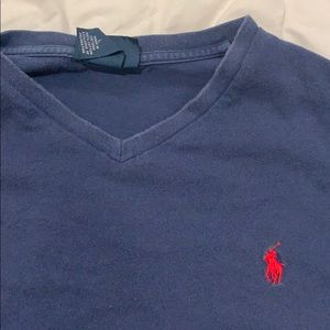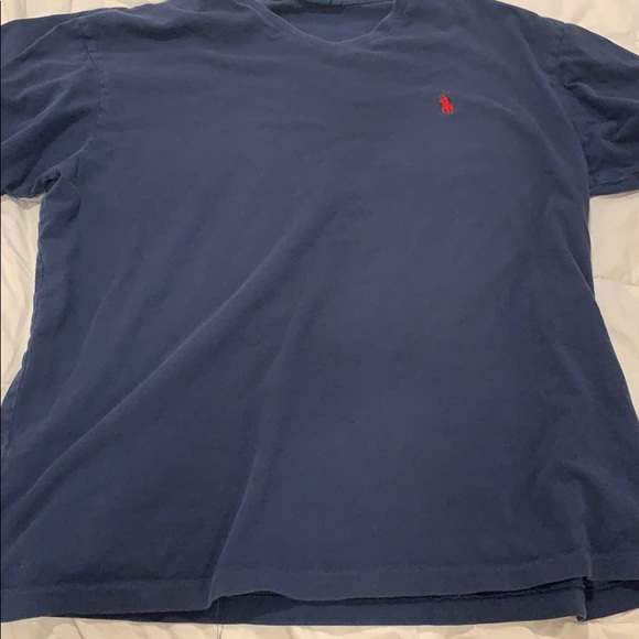 Navy blue with red logo. Classic look. Worn shirt.m but in great condition. Has some fade but perfectly worn in.
