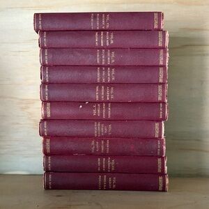 Elegant set of red books with gold lettering. Ideal for decor or collectors.