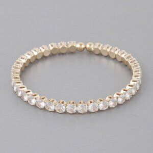 This classic rhinestone cuff bracelet delivers timeless elegance with a structured design. Designed with rhinestone accents, it adds refined sparkle to the wrist. The cuff silhouette allows for easy wear and removal. Lightweight materials ensure comfort throughout the day. Its polished finish complements both casual and formal outfits. Ideal for wearing alone or stacking with other pieces, it offers versatile styling. This bracelet is a staple accessory with enduring appeal.