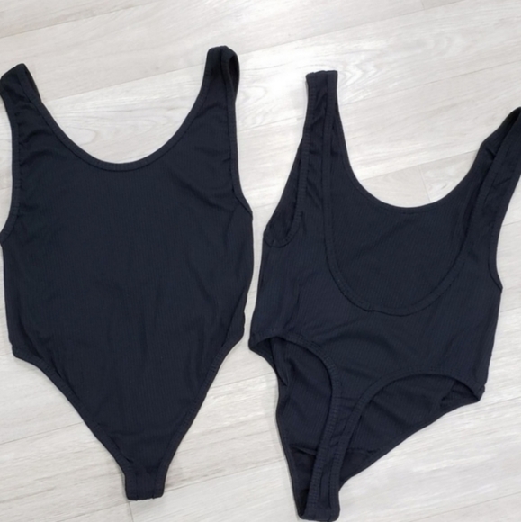 I Heart Black Classic Ribbed Thong Bodysuit 95% Rayon 5% Spandex