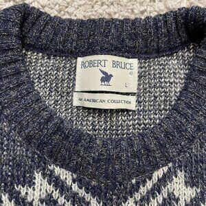 Classic Robert Bruce Geometric Knit Sweater Gray & White Large