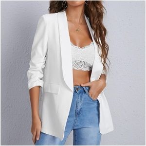 Classic Ruched 1/2 Sleeve Open Front Blazer