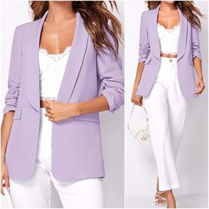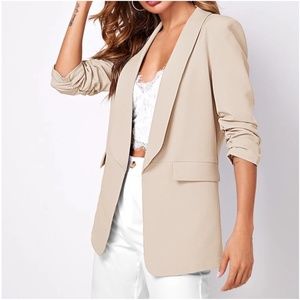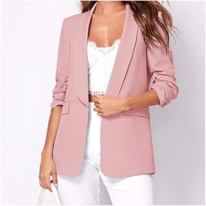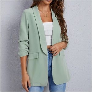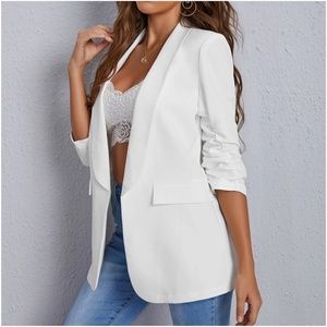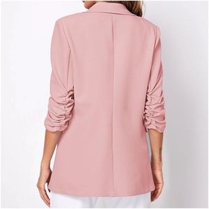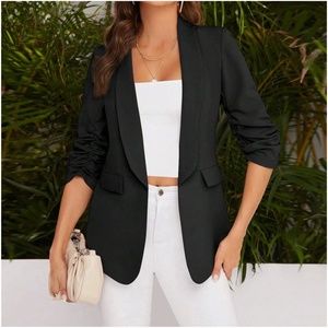 Classic Ruched 1/2 Sleeve Open Front Blazer