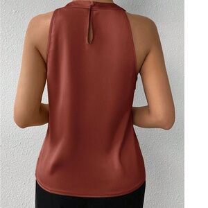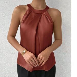Classic Satin Pleated Solid Tank Top