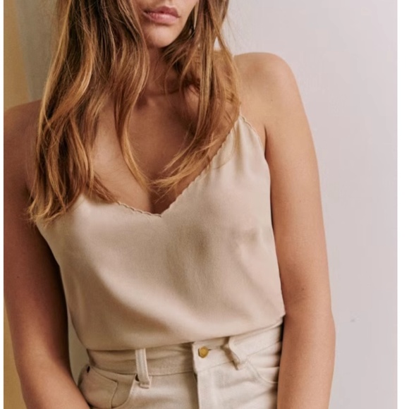 Classic Sezane Adriano Silk Top Cami - Cream Light Beige