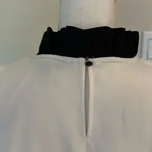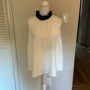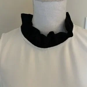 Classic black and white sleeveless shell with ruffle neck detail. Perfect for work, going out, or formal! Recently dry cleaned and only worn one time because of Covid and not going back into the office!!!