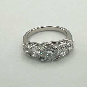 This exquisite set of silver rings features a stunning solitaire engagement ring with a brilliant center diamond, complemented by a matching band adorned with sparkling accent stones. The intricate halo design of the second ring adds a touch of elegance, making it a timeless choice for any occasion. Crafted with precision, these rings showcase a classic and sophisticated style that highlights the beauty of the diamonds. Please note center stone passed the diamond test. Cubic zirconia stones are slightly milky in color. So I am selling it for a very good price.