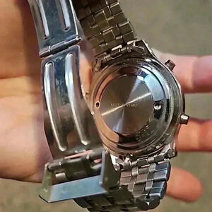 Classic Silver & Gold Tone Link Bracelet Talking Watch w/ Alarm & Locking Clasp