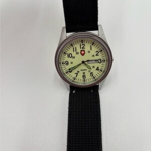 Elevate your style with this classic men's watch featuring a sleek silver case and a distinctive green dial. Perfect for any occasion.