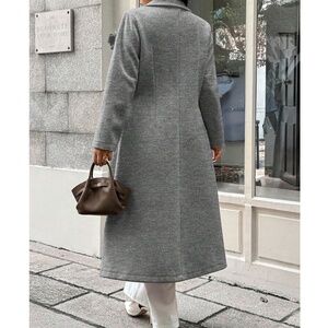 Classic Solid Double Button Floral Appliqué Mid Length Jacket Coat