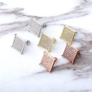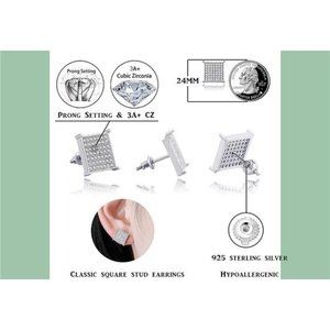 Classic Square Silver 925 Sterling Silver Simulated Iced Out Diamond Earrings