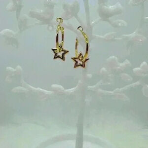 Classic Star Stainless Steel Hollow Pentagram Hoop Earrings