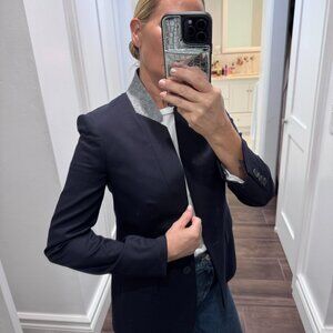 Stylish classic 1 button blazer from Stella McCartney in 100% wool fabrication. Hardly worn at all in perfect condition. Would fit a UK 8 / US 4 / Italian 40 / French 36. Lining is rayon/cotton mix and there is a beautiful very subtle grey detail on the collar.
