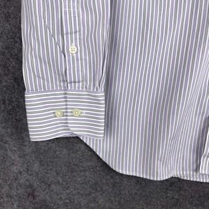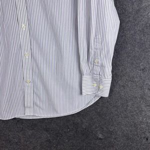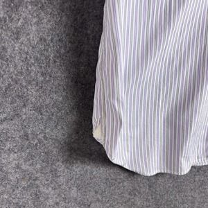 Elevate your wardrobe with this classic striped men's shirt. Perfect for any occasion, this shirt offers a timeless look with its elegant design. The subtle gray stripes add a touch of sophistication. sleeve length is 23-33, unfortunately too short for me.