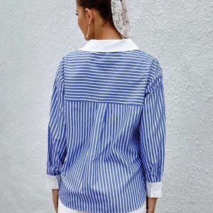 Classic Striped Print Button Front Shirt Blue and White
