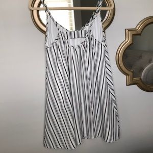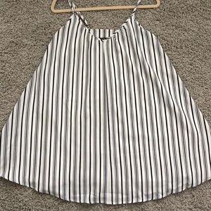 Get Spring and Summer ready! This flowy dress drapes beautifully and would flatter any figure. Black and white stripes.