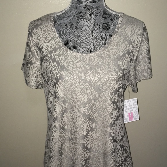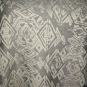 This classic T has a jacquard material with a grayish silver background and cream design. Classic high low design to cover what I refer to as “my business.” Very pretty, feminine and elegant.