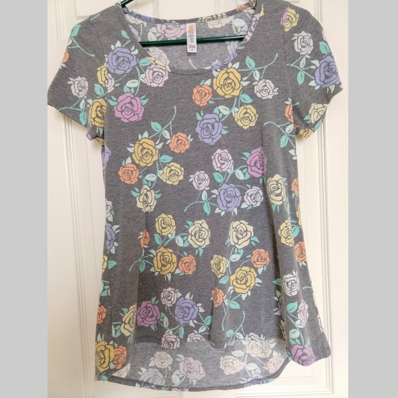 EUC Classic T with HTF multicolored pastel roses on a heathered light grey background. Pattern was called "Disney Rose" by the consultant I purchased from but I should be clear that there are no Disney markings on the shirt. Very soft cotton material that feels similar to LLR leggings. Very cozy & has some stretch to it. Has been washed and worn a few times but is in excellent condition. Smoke free home.