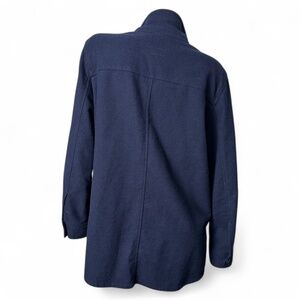 Classic long-sleeved, button-down Talbots women's size L navy shirt-jacket. It looks like it's a large weave linen fabric.