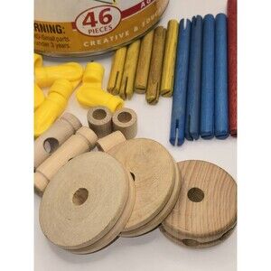 Classic TINKERTOY Construction Set 41 Pieces Playskool Wood Mini Set missing 5