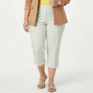 Classic Talbots Green & White Pin-Stripe Stretch Cotton Capri Pants, Size 16