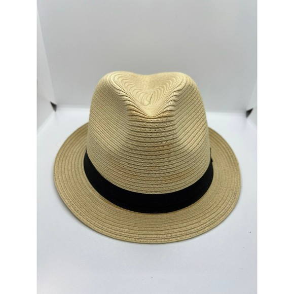 Elevate your style with this classic tan fedora hat featuring a sleek black band. Perfect for any occasion, this hat adds a touch of sophistication to your look.