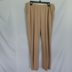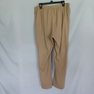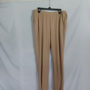 Elegant tan slacks with a relaxed fit. Perfect for any occasion. The inseam is 27 inches and waist to bottom is 41 inches.