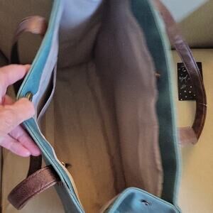 Classic Teal and Brown Tote Bag with Brown Faux Leather Accents