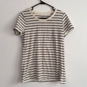 Great basic tees in gray, cream and black striped, and navy. gray is size small Massimo Supply Company for Target boyfriend style Tee, also fits size medium. Striped Tee is size medium Massimo supply company for target. Navy Tee is Gap, The Essential Twe, Size medium. All VGUC. I have two more shirts that I'm going to add as well. I'll take photos asap.