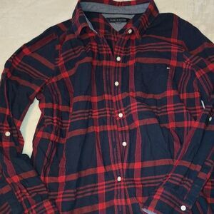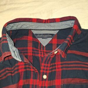 Tommy Hilfiger Red Navy Plaid Flannel Shirt Men’s L