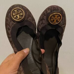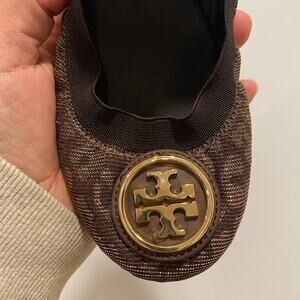 Classic Tory Burch Flats Leather Sole Golden Brown Animal Print 5.5 us