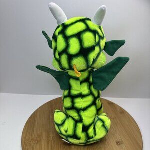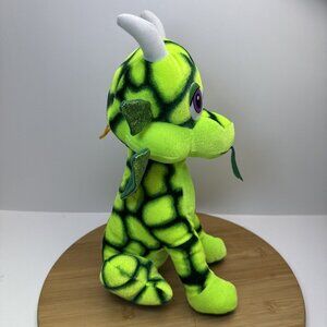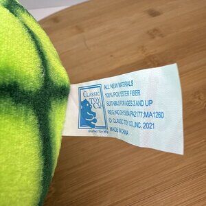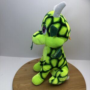 This is a pre-owned Classic Toy Company Green 13” Dinosaur Plush from 2021. It is a small plush toy depicting a dinosaur character, suitable for children aged 3 and up. The toy is made in China and is part of the Dinosaur character family.
