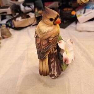 Classic Treasures Female Red Cardinal On Brabch With Flower Porcelain 5.5x3.5 In