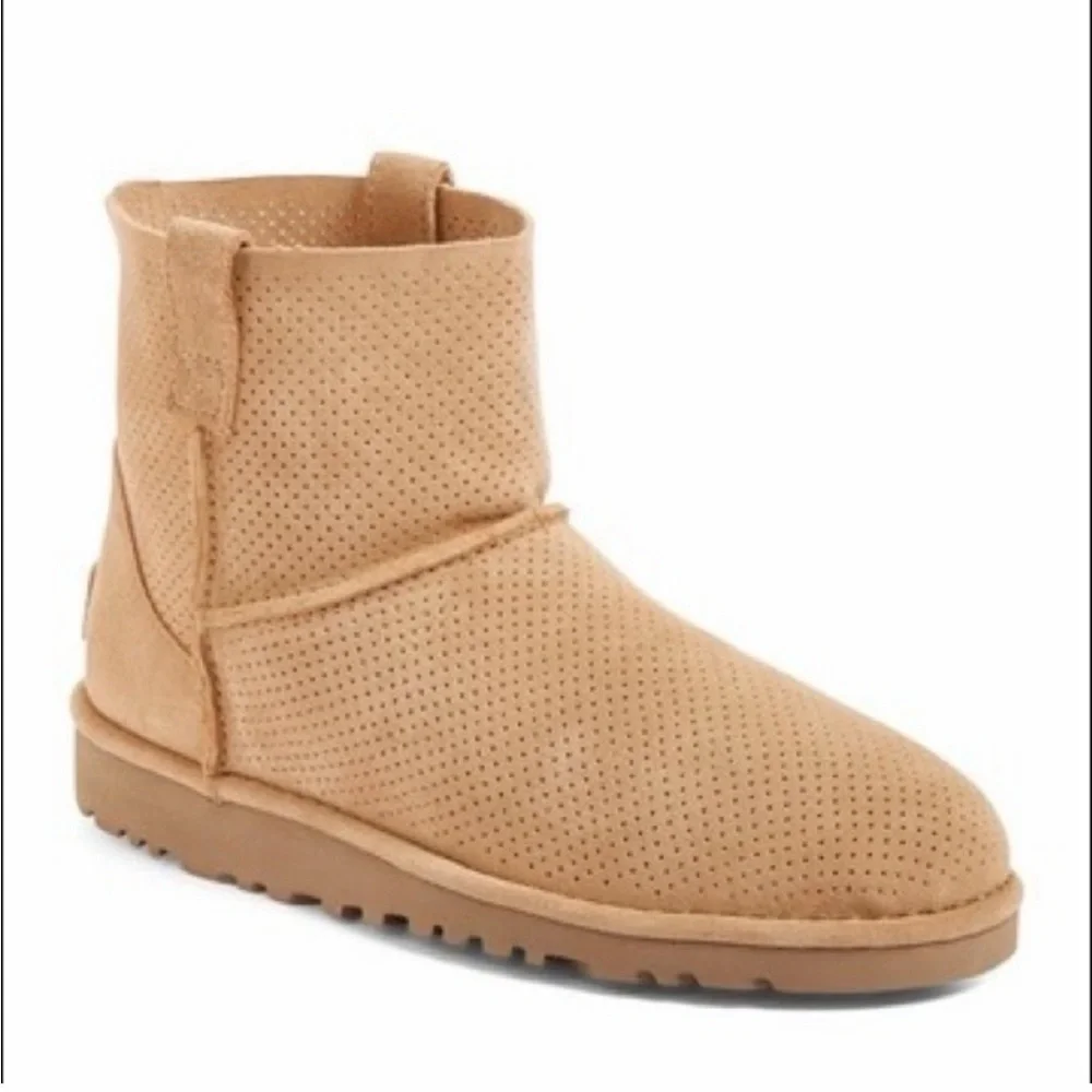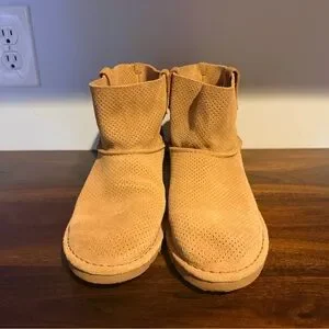 Stylish tan UGG ankle boots with perforated design. No furry lining in these so they are perfect for spring! Barely worn (see photos of sole)!