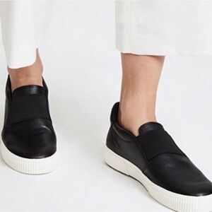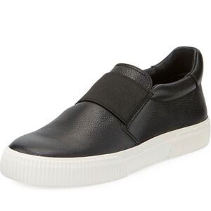 Classic VINCE Modern Black Pebble Leather Slip-on No Lace Banded Sneakers