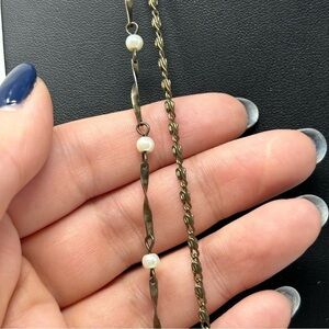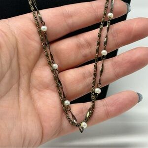 Classic Versatile Long Double Layered Gold Tone Chain with White Faux Pearls 26”
