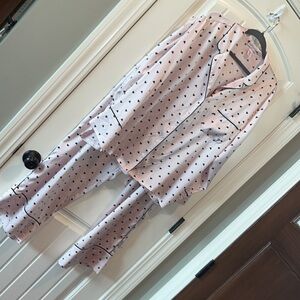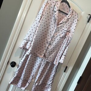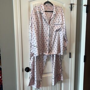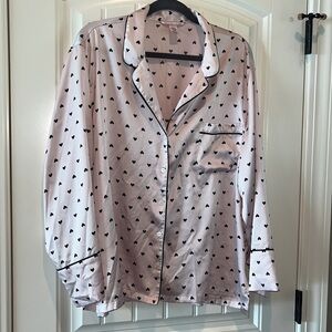 Classic Victorias Secret pink pajamas black hearts size XXL satin like Barbie