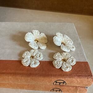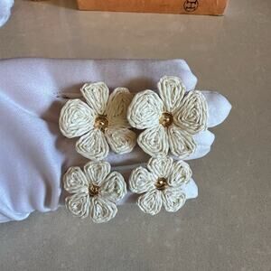 Elegant cream floral earrings. Features intricate flower design. Gold plated earring, hypoallergenic & lightweight, "Only 1 available!”