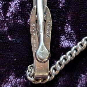 Classic Vintage HICKOK Tie Bar Clip - 10K Gold Plated with Chain, Excellent Gift