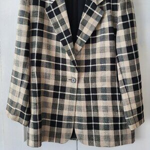 This is definitely a classic! The style never goes out of style. The plaid is black, beige & white.