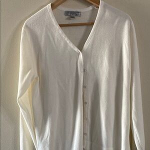 Elevate your wardrobe with this classic white cardigan sweater. Perfect for layering, it offers both comfort and style.