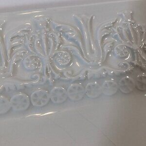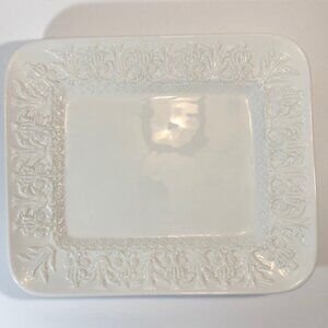 Elevate your dining table with this classic white embossed square serving platter. Its elegant design is perfect for showcasing your culinary creations.