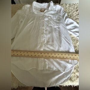 This elegant white blouse features a classic collar and long sleeves, perfect for a polished look. Made from a light, crisp fabric, it offers a sophisticated appearance suitable for professional settings. Its timeless design ensures it remains a staple in any wardrobe.