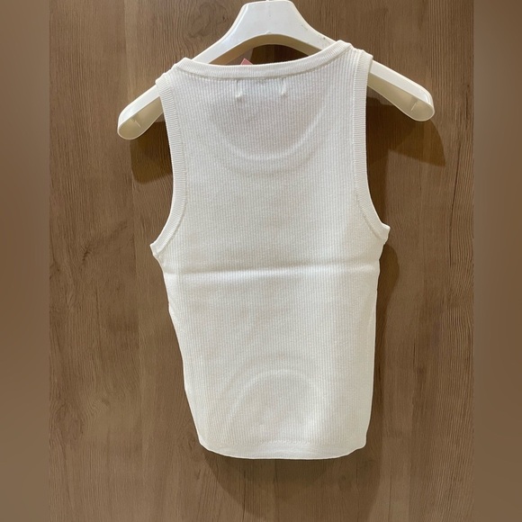 Elevate your style with this classic white ribbed tank top. Perfect for layering or wearing alone, it offers comfort and versatility.