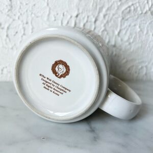 Classic Winnie the Pooh mug by the Walt Disney Company. Winnie the Pooh has his head in the Hunny pot saying You see, what I ment to do... with Piglet and Eeyore looking on. Coffee cup measures 3-1/4" across the top and is 3-1/2" high. Excellent condition with small manufacturing blemish shown in close up picture.